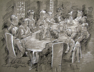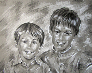 1991Portret studie van twee mannen, die elk afzonderlijk hebben geposeerd. Pastelpotlood op donkerblauwe ondergrond.