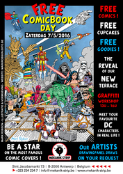 Ontwerp en Illustratie voor de affiche van Free Comic Book Day 2016 te Antwerpen.